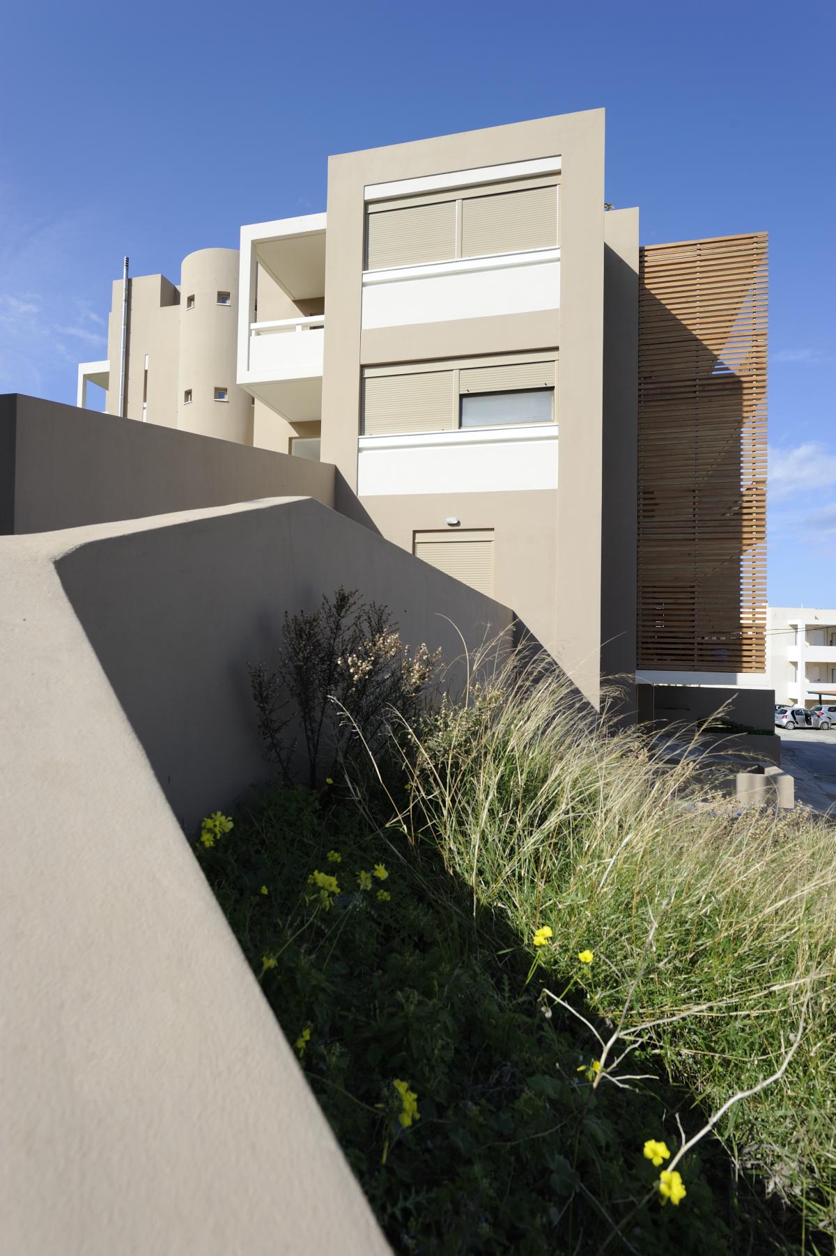 Η επαφή αυτή αποτυπώνεται στην ογκοπλαστική του κτηρίου, στην χρήση των υλικών, χρωμάτων, στον σεβασμό του φυσικού ανάγλυφου.