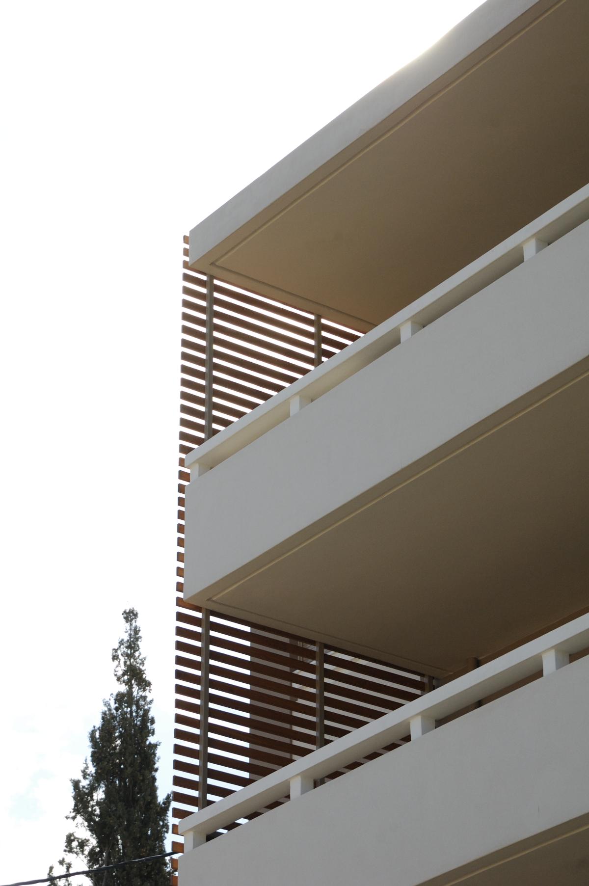 Οι χώροι κατοίκησης αναπτύσσονται σε πέντε επίπεδα ενώ στο πρώτο επίπεδο υπάρχουν χώροι στάθμευσης και αποθήκες.