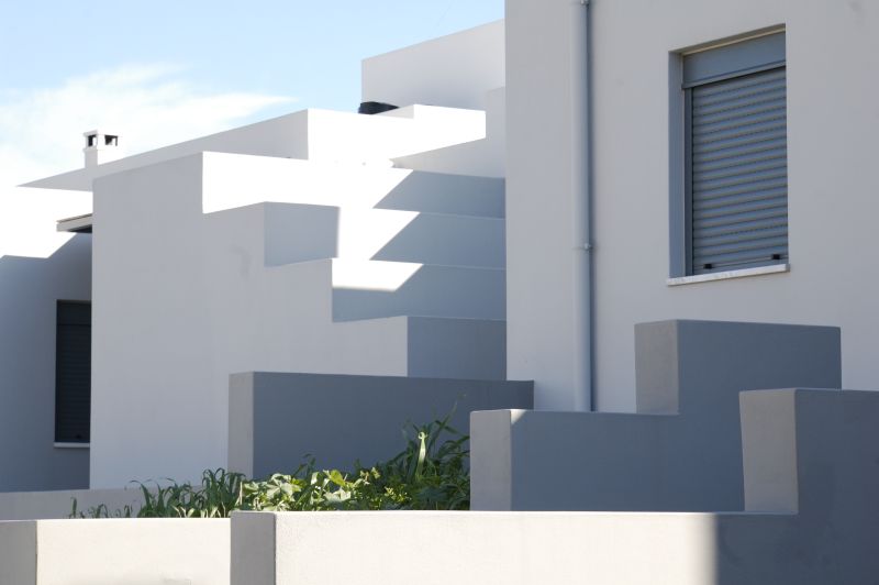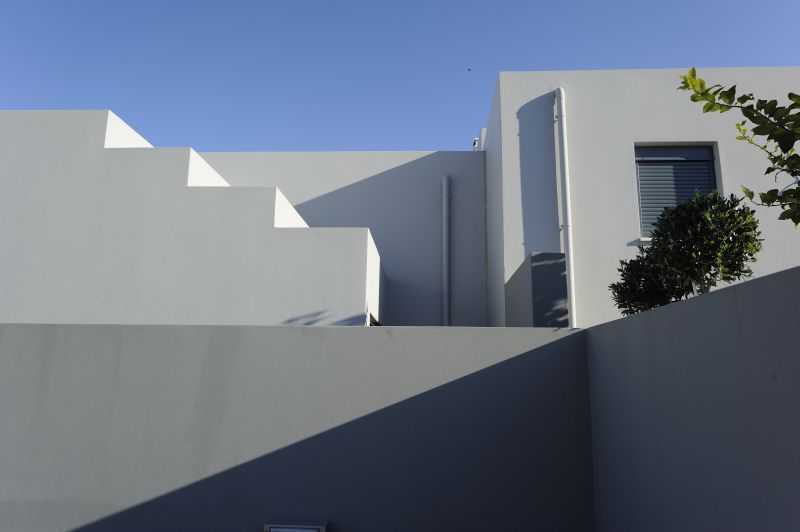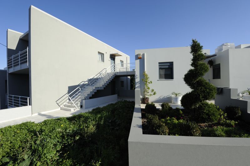 Το φυσικό ανάγλυφο του οικοπέδου. Η θέα βόρεια προς το Κρητικό πέλαγος. Συγκρότημα ισογείων και διώροφων κατοικιών με υπόγειο και ιδιωτικό κήπο. Πανοραμική θέα στο φρούριο Φορτέτζα.